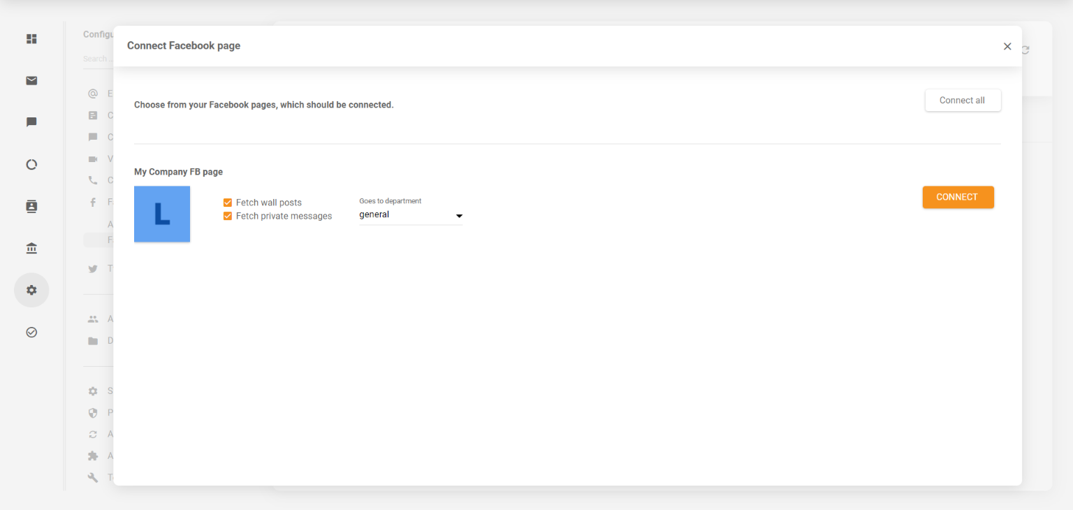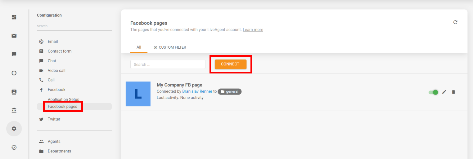 Click on"Connect" next to all Facebook pages y'all want to connect and shut the window. That's it. From this point, all new posts, comments, and messages from your Facebook page will exist fetched to your LiveAgent account.